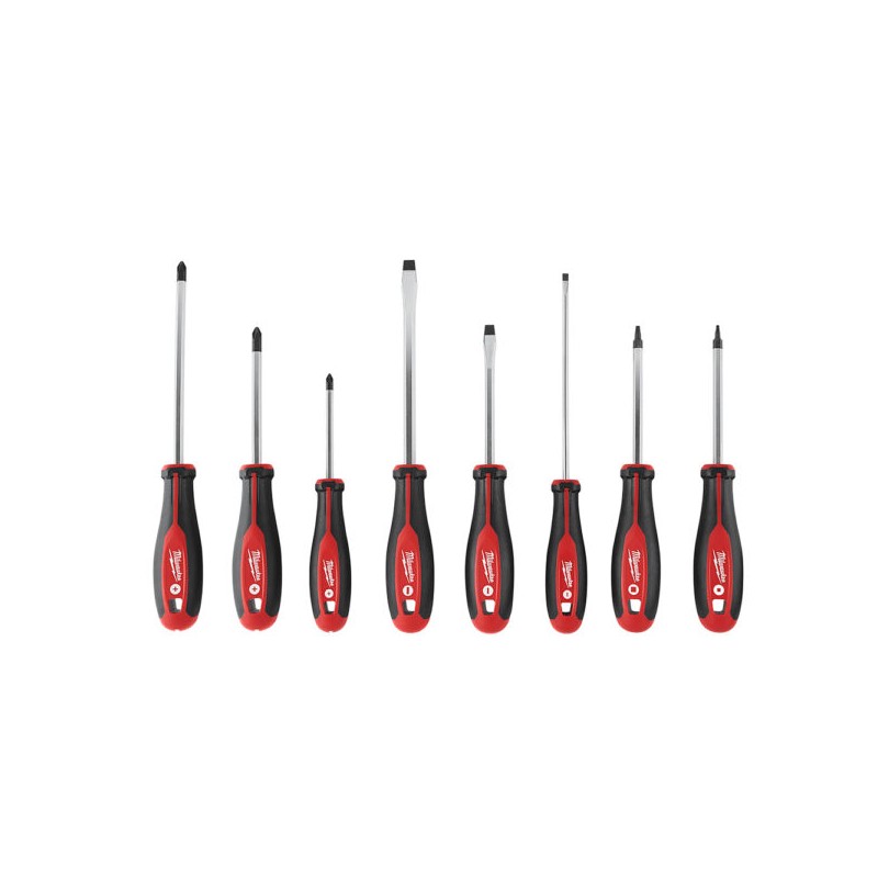 Con puntas endurecidas y vástagos forjados, el juego de destornilladores de 10 piezas Milwaukee® brinda soluciones de grado profesional y durabilidad al usuario. Los tipos de puntas están marcados en la tapa de cada herramienta para una identificación rápida y una mayor eficiencia. El cómodo mango de tres lóbulos permite a los usuarios aplicar cómodamente más palanca.