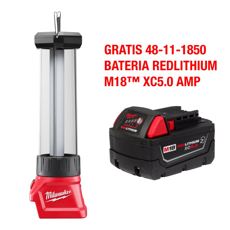 LA ÚNICA LINTERNA QUE SE AJUSTA PARA ENFOCAR La linterna/lámpara M12™ cuenta con un diseño de haz ajustable de 180º-360º para permitirles a los usuarios seleccionar entre la iluminación de un área y la iluminación de la tarea, para tener máxima versatilidad. Con más de 400 lúmenes, la nueva unidad presenta una salida de luz inigualable para iluminar grandes áreas de trabajo. Como un valor agregado para el usuario, la luz incluye un puerto USB de 2.1 amp. de alta potencia para cargar tabletas, teléfonos inteligentes, reproductores mp3 y otros dispositivos electrónicos. Con un diseño robusto y una lente resistente a impactos, la nueva luz está construida para soportar condiciones abusivas en el lugar de trabajo. La iluminación de alta definición TRUEVIEW™ utiliza la tecnología de iluminación más avanzada para ofrecer una verdadera representación de los colores, temperatura de color optimizada, e incluso patrones de haces uniformes todos diseñados para mejorar la productividad y la seguridad. La iluminación de alta definición TRUEVIEW™ utiliza la tecnología de iluminación más avanzada para ofrecer una verdadera representación de los colores, temperatura de color optimizada, e incluso patrones de haces uniformes todos diseñados para mejorar la productividad y la seguridad.,Proporciona hasta 2.5 veces más tiempo de ejecución, un 20 % más de potencia y 2 veces más vida útil que las baterías estándar de ion de litio de 18 voltios. El juego de baterías M18™ REDLITHIUM™ XC5.0 con capacidad prolongada cuenta con una construcción de empaque, sistema electrónico y rendimiento superior para ofrecer más trabajo por carga y más trabajo a lo largo de la vida útil del juego que cualquier otra batería en el mercado. La batería M18™ REDLITHIUM™ XC5.0 cuenta con un diseño avanzado que protege al de los ambientes hostiles del lugar de trabajo. Esta protección desvía el agua del sistema electrónico y fuera del empaque de la batería, prolonga el tiempo de ejecución y la vida útil minimizando el calor y evita las fallas del juego provocadas por vibraciones o caídas. Este diseño exclusivo de Milwaukee® también permite que la batería funcione en condiciones climáticas de frío extremo (menos de 0º F/-18º C).
